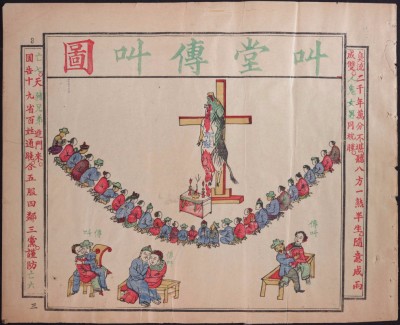 Professor Zheng showed this picture as an example of the anti-Christian (especially anti-missionary) sentiment sweeping through China in the last decade of the 19th century. I was intrigued – why had the artist chosen a pig to represent Jesus? I began searching, and found that this was part of a longer tract missionaries had translated into English as Heresy Exposed in Respectful Obedience to the Sacred Edict: A Complete Picture Gallery 謹遵聖喻皮屑全圖. (PDF here)